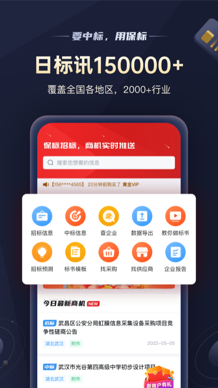 根据投标人的使用习惯,保标招标网也有移动端app,在各大应用商店即可下载,移动端上的数据与PC端同步,不用担心数据缺失,更支持关键词订阅功能,只需设置好地区,以及行业关键词,在有新的招标信息更新的时候即可直接推送到手机上,让你躺着也能获得商机。